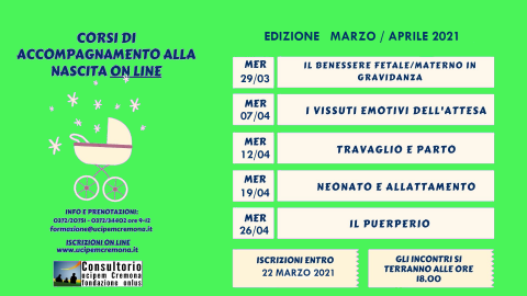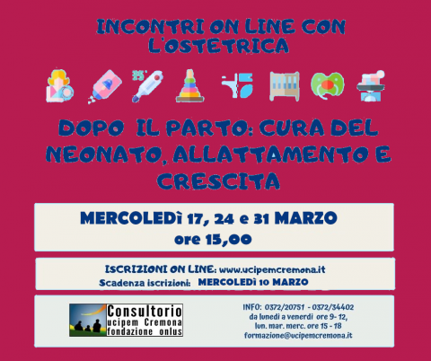 Gli incontri GRATUITI, avverranno attraverso la piattaforma GOOGLE MEET e saranno tenuti dalla dott.ssa Marina Valenti, ostetrica.