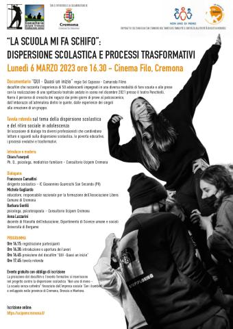 "LA SCUOLA MI FA SCHIFO". DISPERSIONE SCOLASTICA E PROCESSI TRASFORMATIVI - ISCRIZIONE