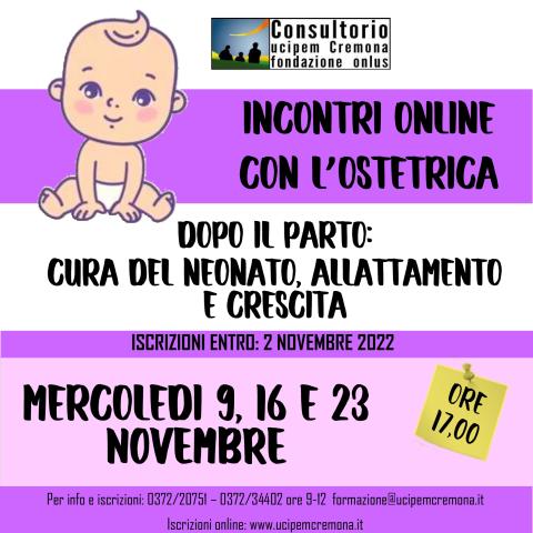 DOPO IL PARTO: CURA DEL NEONATO, ALLATTAMENTO E CRESCITA - EDIZIONE NOVEMBRE 2022 - ISCRIZIONI