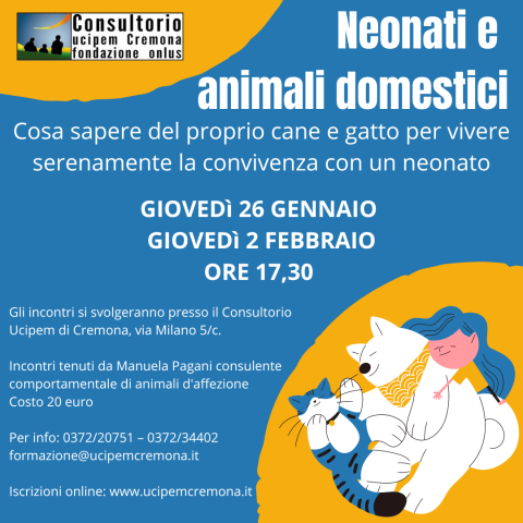 Posticipato l'inizio degli incontri NEONATI E ANIMALI DOMESTICI cosa sapere del proprio cane e gatto per vivere serenamente la convivenza con un neonato!