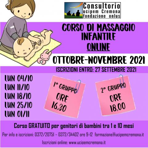 ISCRIZIONI CORSO DI MASSAGGIO INFANTILE ON LINE - EDIZIONE DICEMBRE 2021