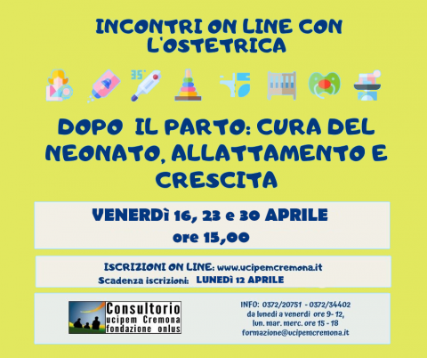 DOPO IL PARTO: CURA DEL NEONATO, ALLATTAMENTO E CRESCITA - INCONTRI ON LINE CON L'OSTETRICA - EDIZIONE APRILE 2021