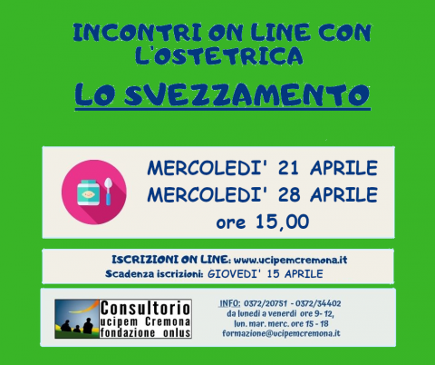 LO SVEZZAMENTO - INCONTRI ON LINE CON L'OSTETRICA - EDIZIONE APRILE 2021
