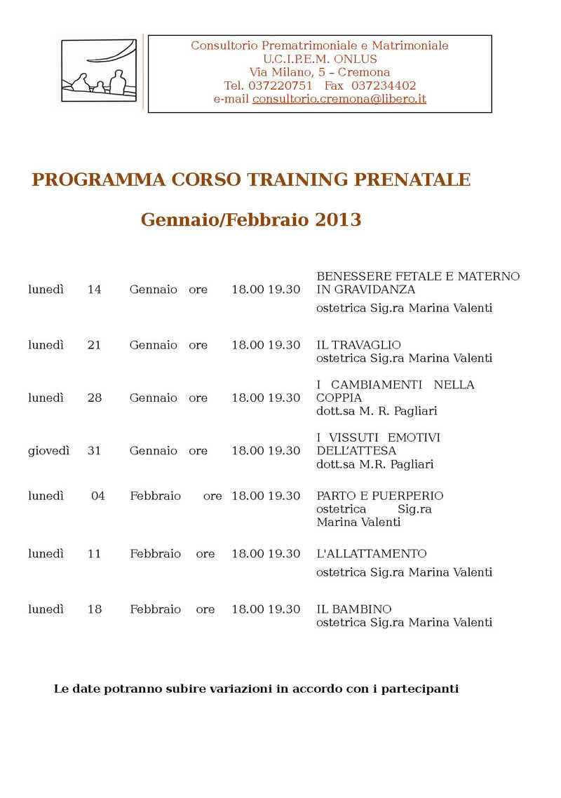 • Leggi tutto su Corso prenatale gennaio/febbraio 2013