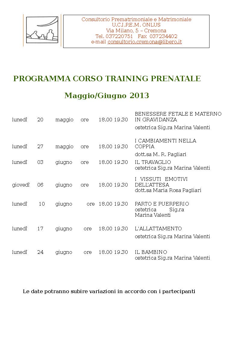 • Leggi tutto su Corso prenatale maggio/giugno 2013