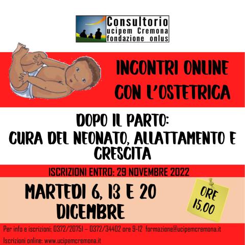 Gli incontri GRATUITI, avverranno attraverso la piattaforma GOOGLE MEET e saranno tenuti dalla dott.ssa Marina Valenti, ostetrica.