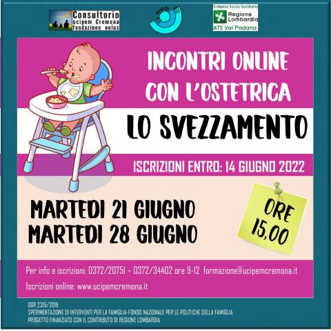 INCONTRI ON LINE CON L'OSTETRICA - LO SVEZZAMENTO ed. GIUGNO 2022